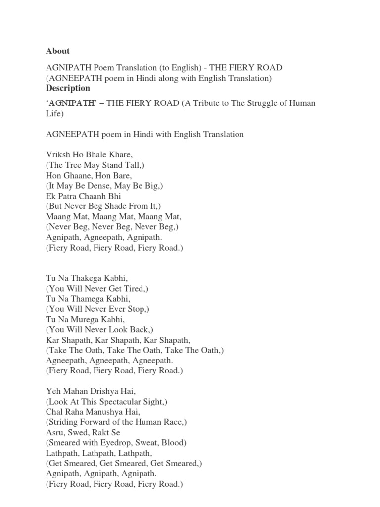 Agnipath Poem In Hindi Pdf Agnipath Poem In Hindi Pdf - This page presents some of the my favorite hindi poems.