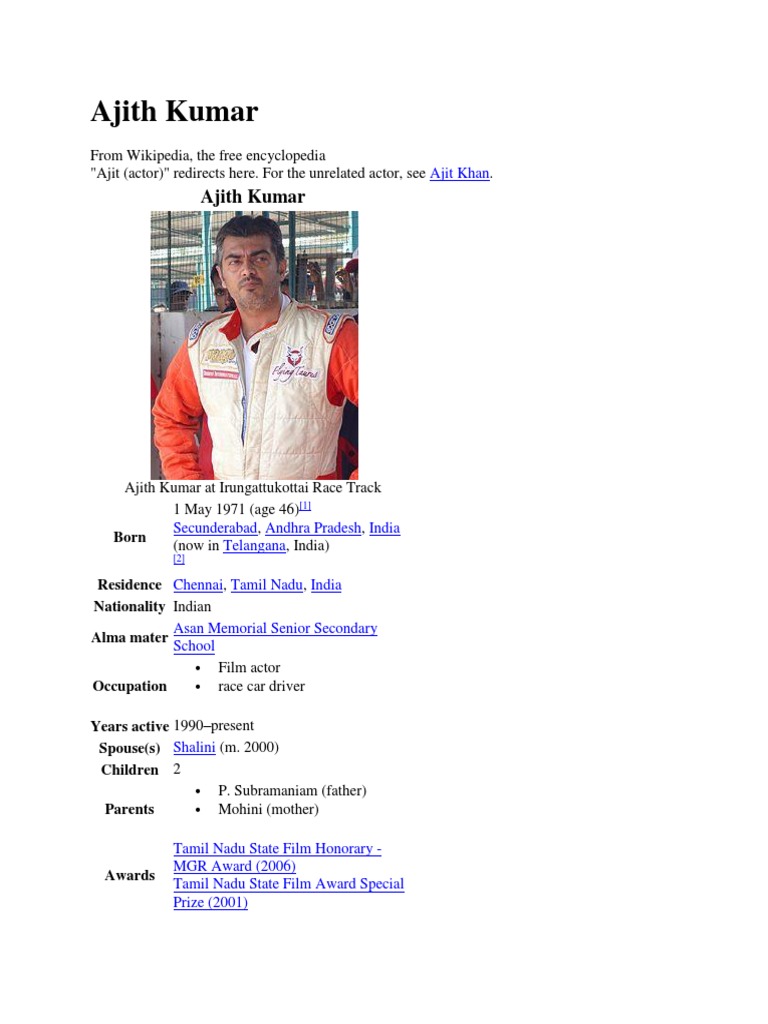 Ajith Father Occupation Ajith Father Occupation / Both of his daughters are married and settelled in what's your father's occupations?