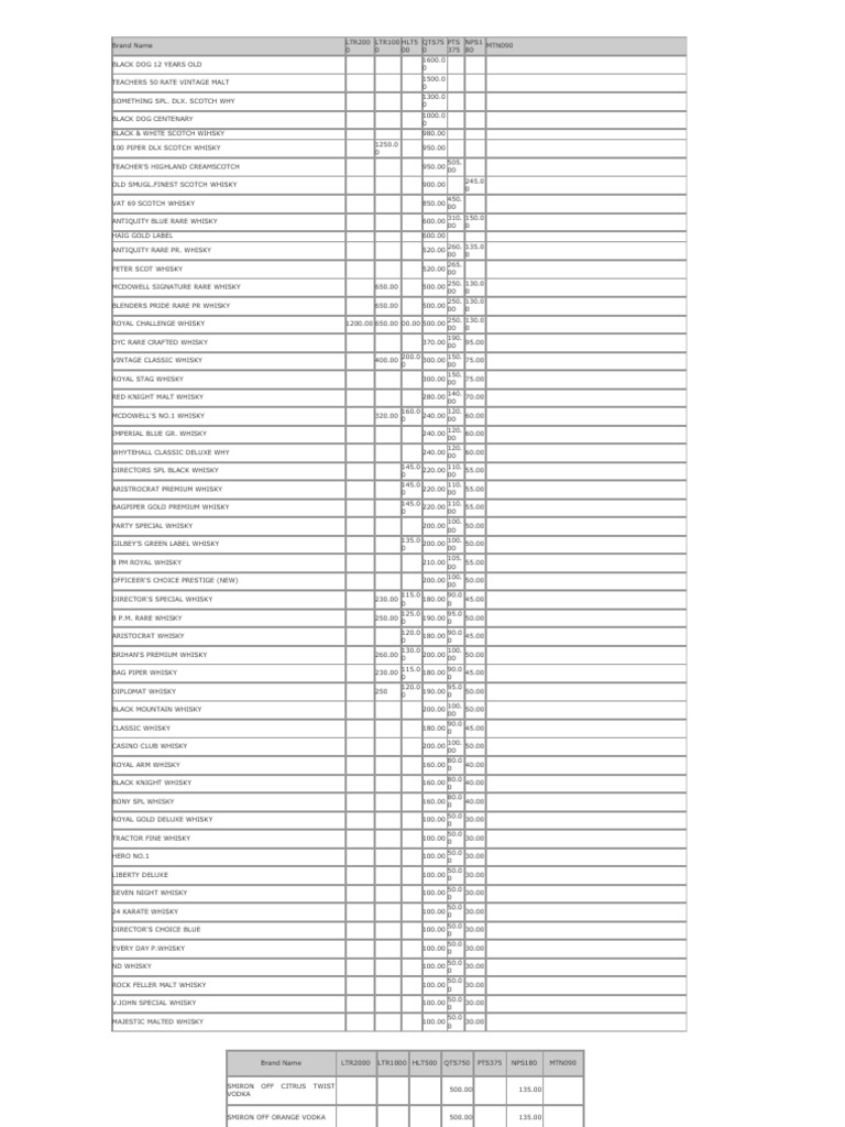 Chandigarh Liquor Price List 2018 Chandigarh Liquor Price List 2018 - The revised price of liquor in kerala came into effect from wednesday.