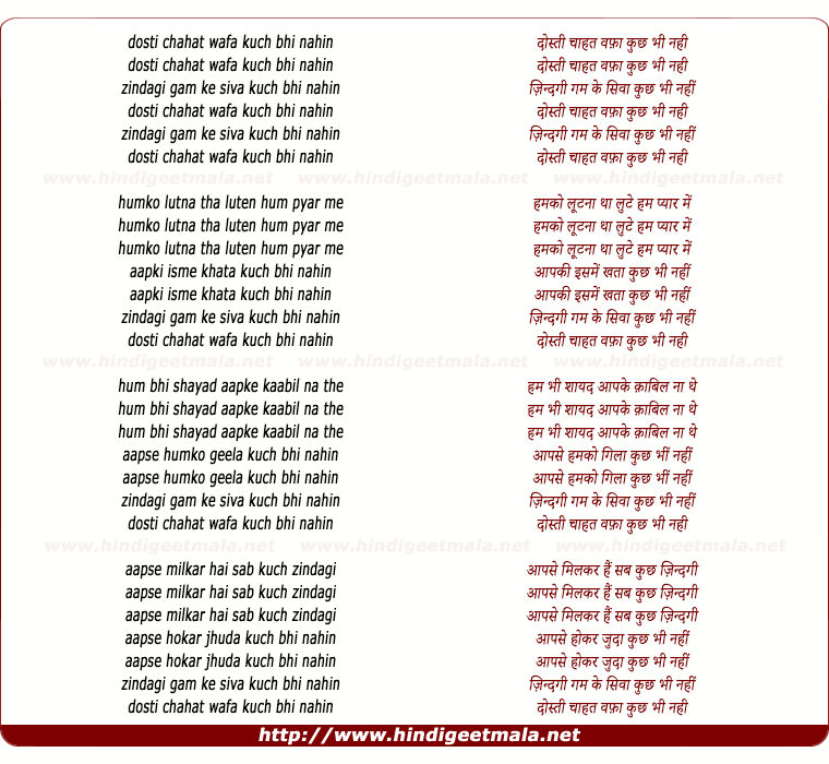 Dosti Ghazal Lyrics In Hindi : Click on the links to see the lyrics.