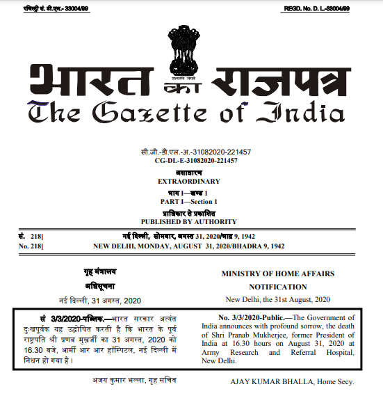 Live Law On Twitter The Government Of India Announces With Profound Sorrow The Death Of Shri Pranab Mukherjee Former President Of India At 16 30 Hours On August 31 2020 At Army Research - Gazette of india notifications are published by department of publication and are printed by the government of india printing.