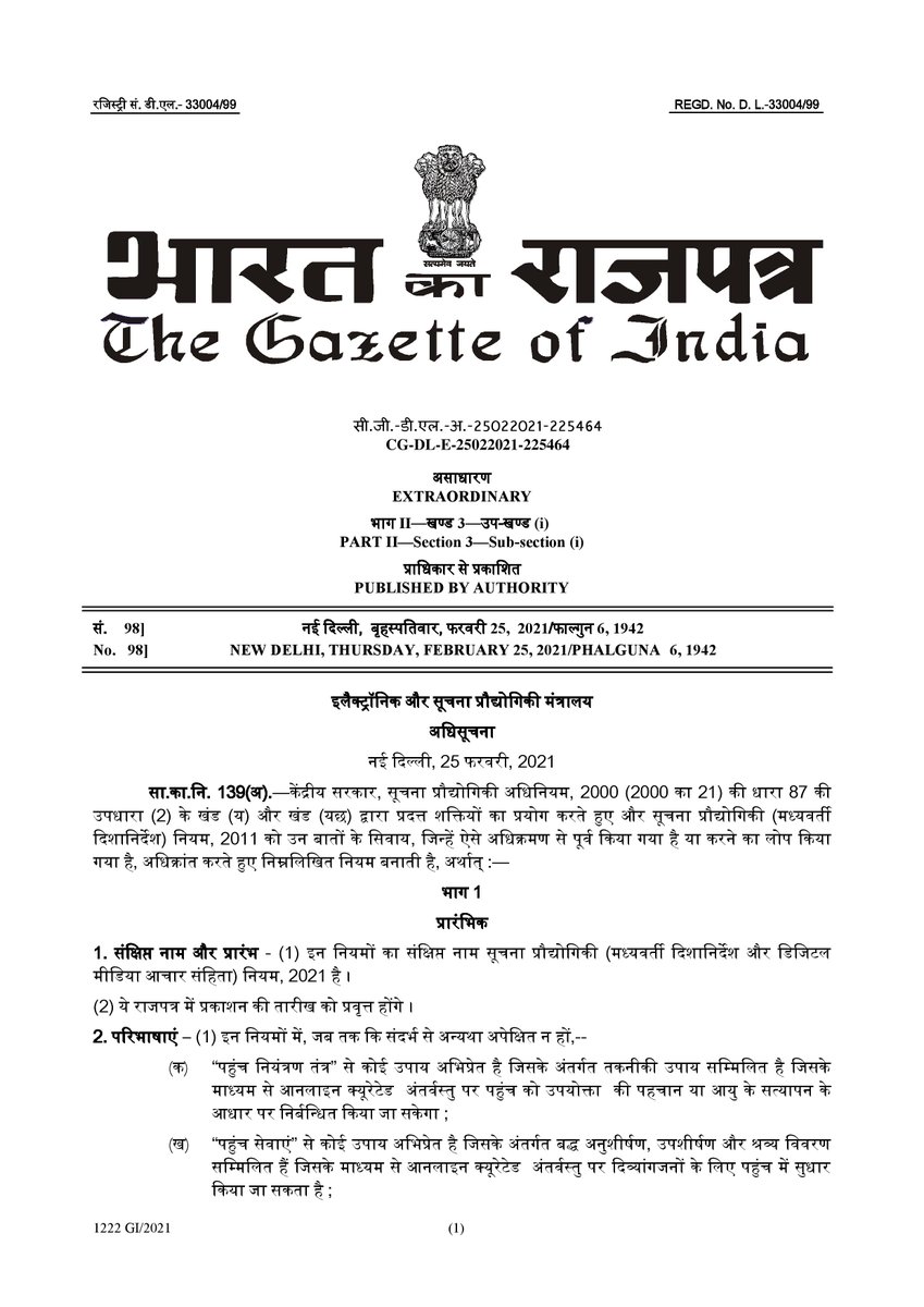 Pib India On Twitter Government Notifies Information Technology Intermediaryguidelines And Digital Media Ethics Code Rules 2021 Rules About Digital Media Ott Focus More On In House Self Regulation Mechanism Gazette Notification Https T Co - Regulations for operationalisation of land policy, 2018.
