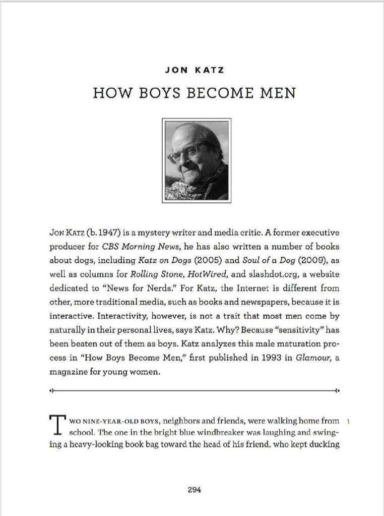 Q1 In Order To Explain How Boys Become Men Jon Ka Chegg Com - Katz mentions that boys are supposed to figure out how to handle things on their and hide their weakness and tears.