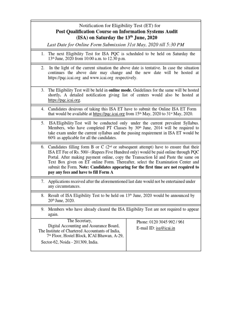 Icai Isa At Exam 2020 Released Icai Isa At New Exam Date Out Application Form Eligibility - Internal security assessor program teaches how to perform assessments for your company and recommend solutions for issues related to pci dss compliance.
