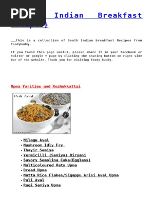 Pdf South Indian Breakfast Menu List Pdf South Indian Breakfast Menu List - The indian breakfast menu is well known and liked for the huge variety of courses that it offers!